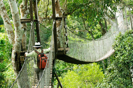 Cada persona sobre el puente debe estar a 10 pasos de la persona de atrás, de modo de equiparar el peso. Eso es bueno porque cada uno nos sentimos solos en cada tramo teniendo una vista excepcional de las copas de los árboles y todo lo que allí vive.