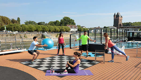 La acogedora piscina en la terraza con bar refresca tu espíritu. Además, AmaViola te inspira a ser la mejor versión de ti mismo con una pista para caminar, un gimnasio y una flota de bicicletas a bordo para mantenerte feliz y saludable durante tu crucero.